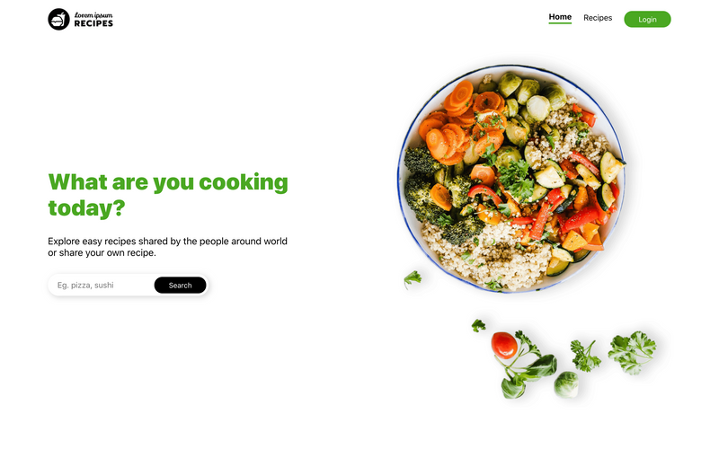 Free Hero section for food recipes website UI snippet made with HTML, Css, and Js to customize your websites.