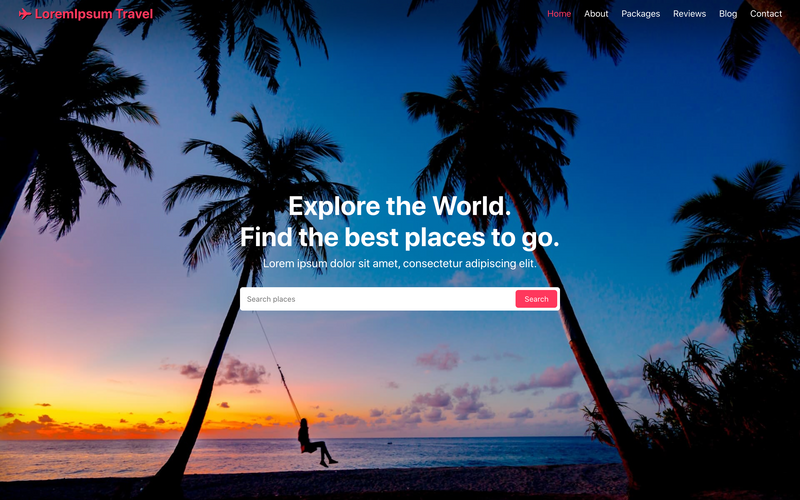 Free Homepage for travel agency website with search UI snippet made with HTML, Css, and Js to customize your websites.